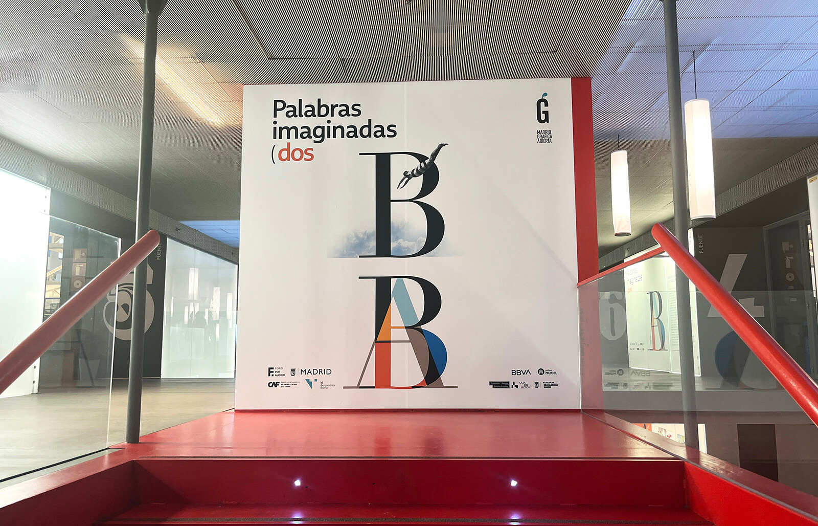Palabras Imaginadas Dos Cartel diseñado por Pepe Cruz en la exposición de Casa del Lector (Madrid) 09/10/2025